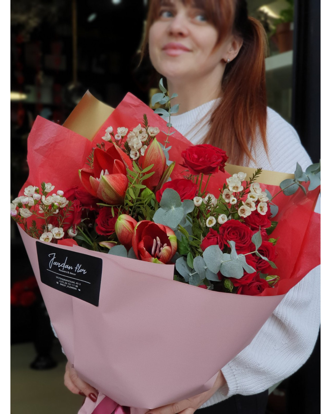 Узнайте подробную информацию у наших флористов позвонив по указанным на сайте номерам телефона при оформлении заказа.