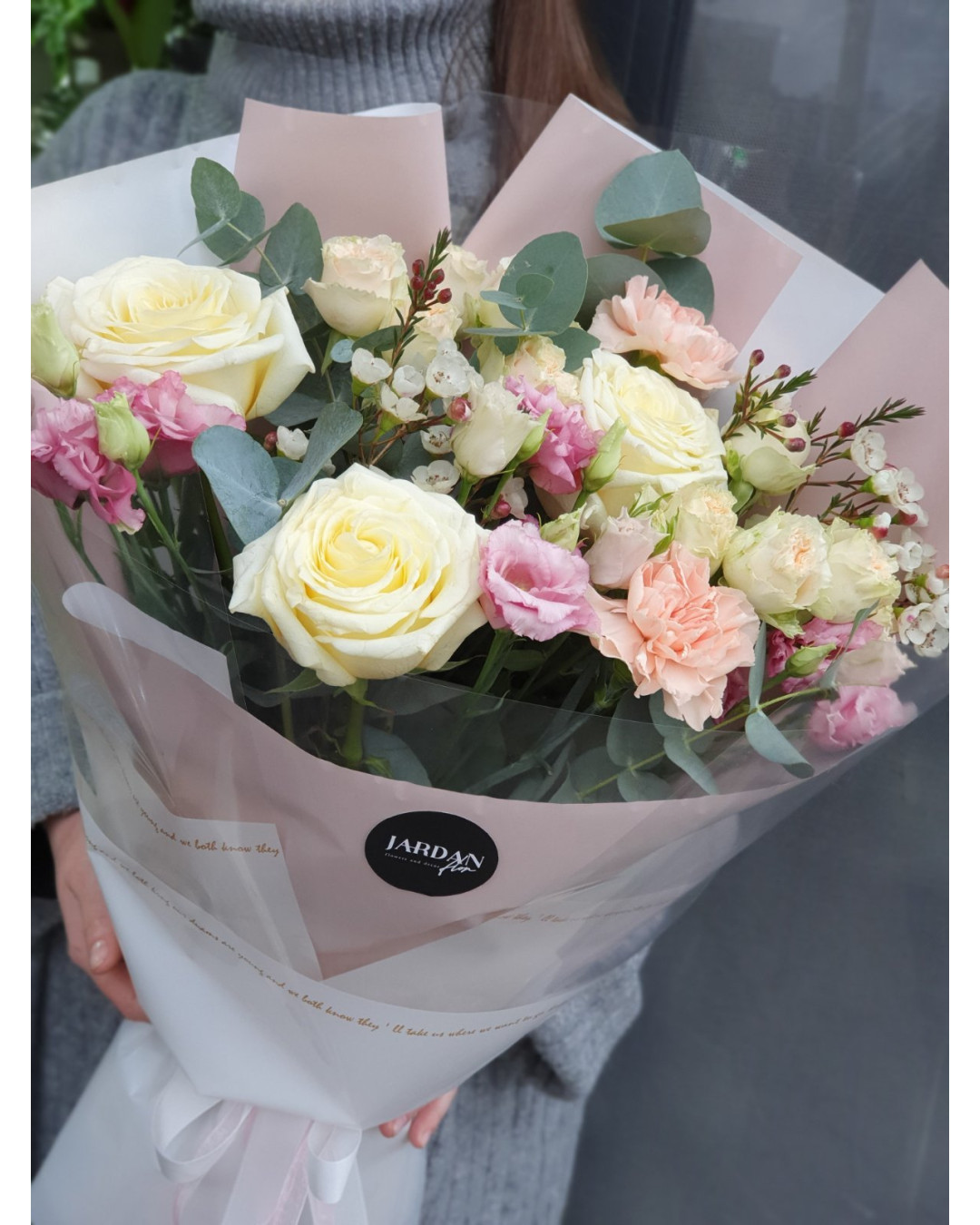 В случае ограничения сезонности некоторых сортов, цветы могут быть заменены на равнозначные, сохраняя настроение букета и коммерческую стоимость.
