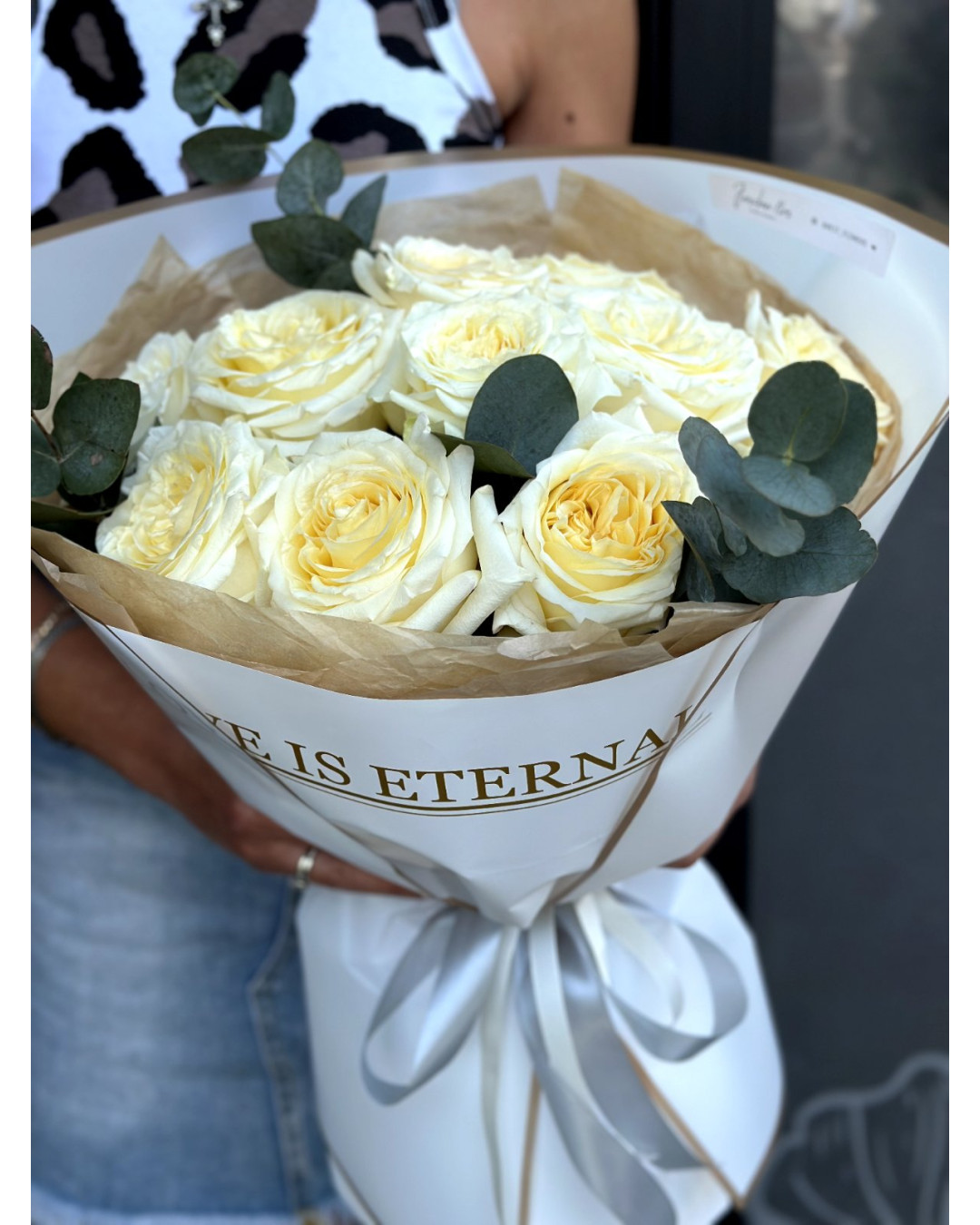 В случае ограничения сезонности некоторых сортов, цветы могут быть заменены на равнозначные, сохраняя настроение букета и коммерческую стоимость.